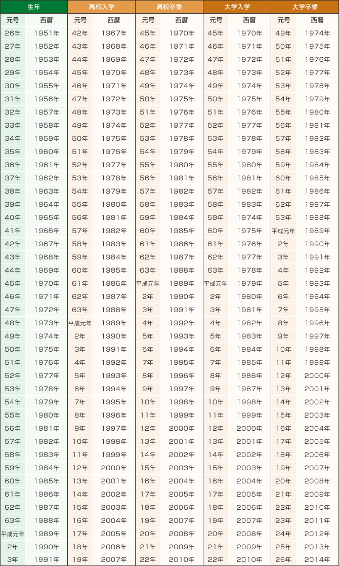 - 履歴書・職務経歴書作成に。入学・卒業早見表