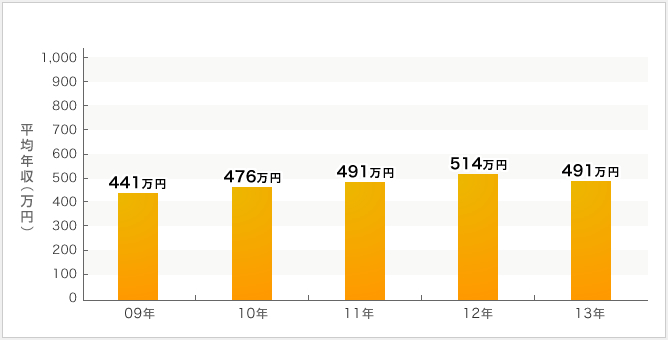 イオンディライトの平均年収は2009年度から4年連続で増加しましたが、2013年度には2011年度の水準まで減少しています。