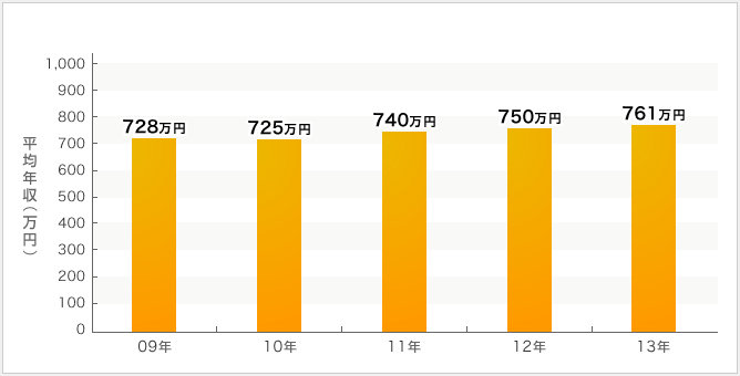 クボタの平均年収は2010年度に若干減少しましたが、2010年度から2013年度まで3年連続で増加しています。