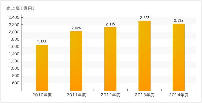 2014年度の売上高は約2213億円で、前年度比4.7%減となりました。経常利益は約44億円で前年度比17.6%減、当期純利益は約27億円で前年度比6.0%減となりました。