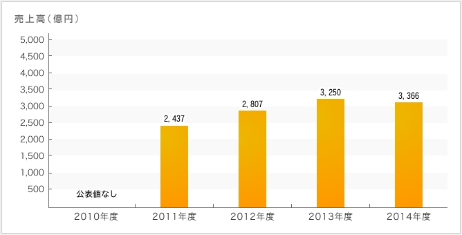 2014年度の売上高は3,366億円で前年度比約3.5%増となりました。経常利益は288億円でした。売上高は3年連続で増加しています。
