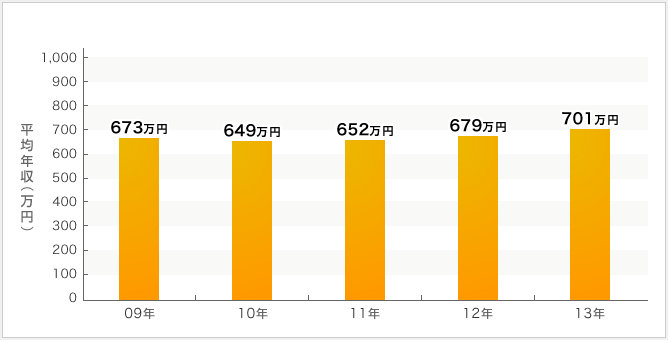 北野建設の平均年収は2009年度から2010年度にかけて減少しましたが、2011年度から2013年度まで3年連続で増加しました。