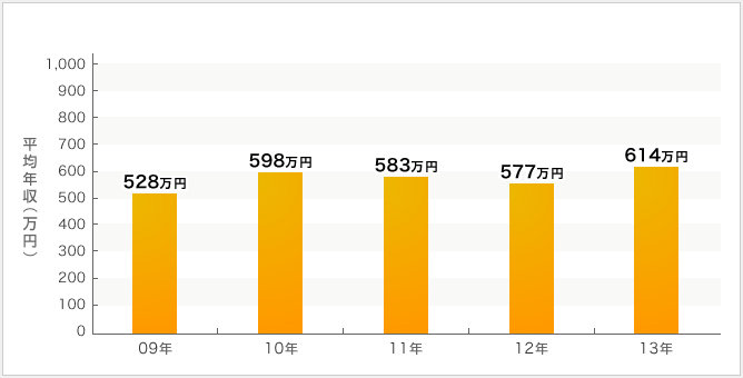 大末建設の平均年収は2010年度から2012年度にかけて2年連続で減少しましたが、2013年度には過去5年における最高額まで増加しました。