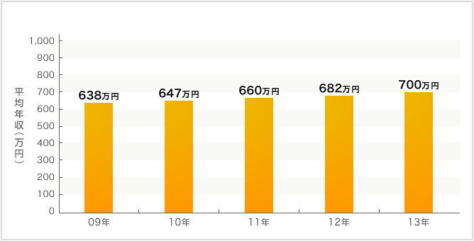 川崎重工業の平均年収は2009年度から2013年度にかけて、毎年約10~20万円ずつ増加しています。