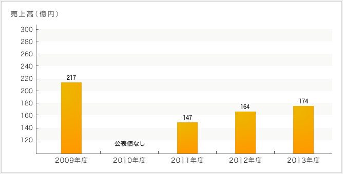 2013年度の売上高は174億4,100万円で、前年度から10億2,900万円増加しました。