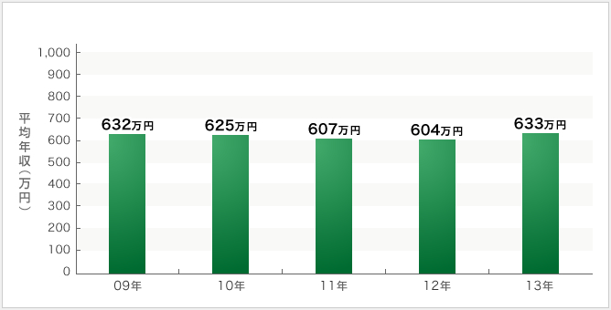 東亜建設工業の平均年収は若干の増減はありますが、2009年度から2013年度まで、比較的安定して推移していると言えます。