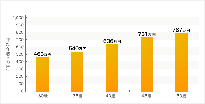 ※上記の表は、年収を公表している中堅ゼネコン9社の平均値です。