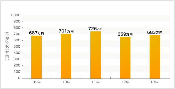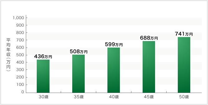 ※上記の表は、年収を公表している準大手ゼネコン10社の平均値です。