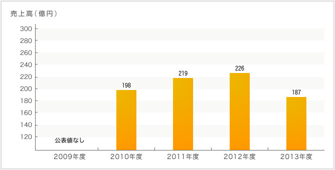 2013年度における売上高は187億4,300万円で、前年度から39億1,100万円減少しました。また、営業利益が3億7,200万円で前年度比1,200万円減、経常利益が2億2,200万円で1,400万円減少しました。