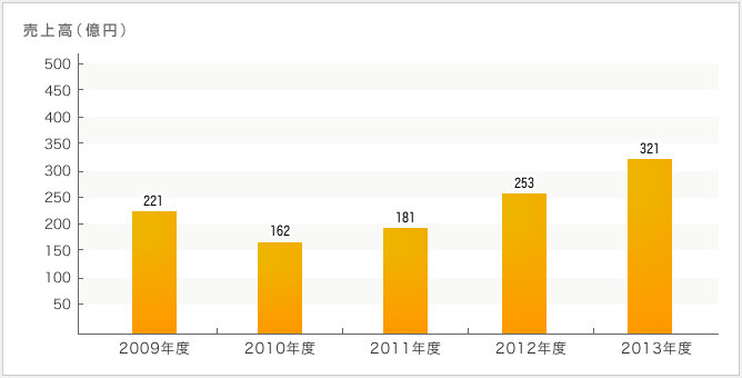 2013年度の売上高は321億8千万円で、前年から27.2%増加しました。