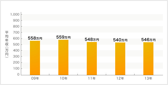 植木組の平均年収は2010年度から2012年度にかけて緩やかに減少しましたが、2013年度に若干回復しました。過去5年の給与水準は比較的安定していると言えます。