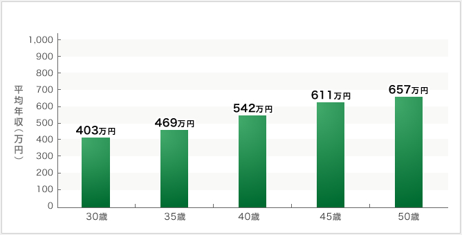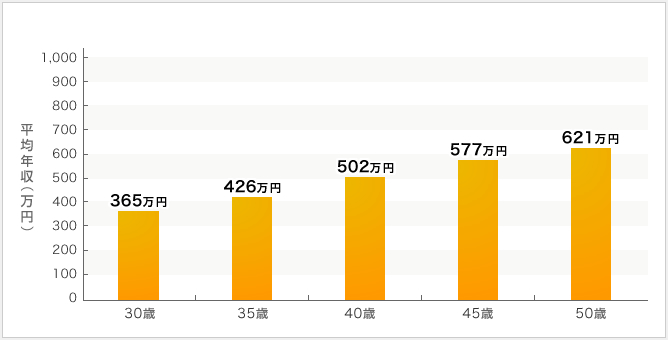 ※上記の表は、年収を公表している中堅ゼネコン9社の平均値です。