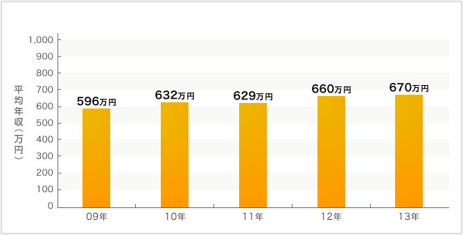 若築建設の平均年収は2010年度から2011年度にかけて約3万円だけ減少しましたが、2012年度には回復し、2013年度には過去5年における最高水準まで増加しました。