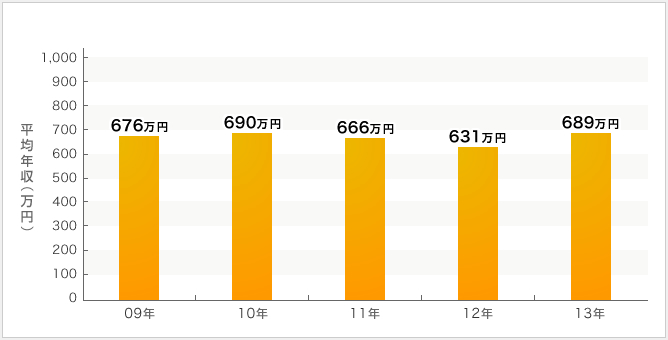 鉄建建設の年度別平均年収は、2009年度から2010年度にかけて増加し、以後、2012年度まで2年連続で減少しましたが、2013年度には2010年度とほぼ同水準まで回復しています。