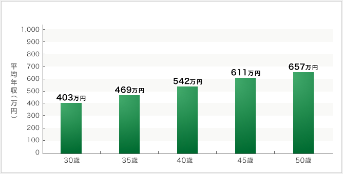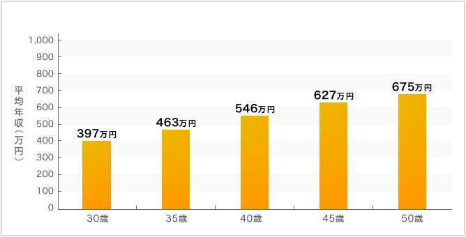 ※上記の表は、年収を公表している中堅ゼネコン9社の平均値です。