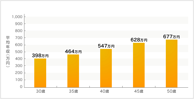 ※上記の表は、年収を公表している中堅ゼネコン9社の平均値です。